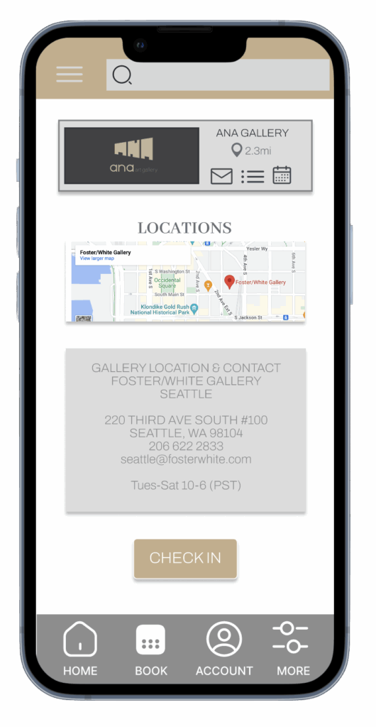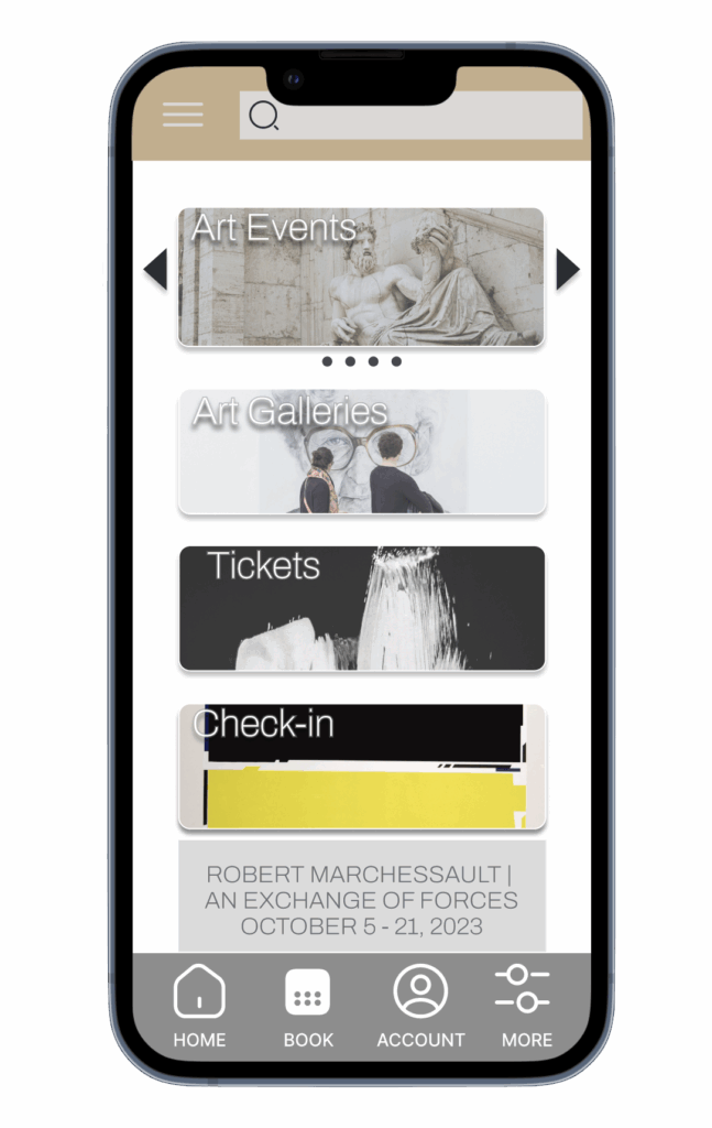 A mobile app designed to help travelers and art lovers easily book gallery visits and check in on the day.